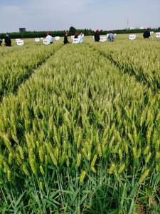 (1)超高产、稳产:2018~2019 年度参加国家小麦良种科研联合攻关试验,最高亩产673.9公斤,平均亩产588.3公斤,比对照周麦18增产6.31%,居17个参试品种的2位。2019~2020年度试验,平均亩产554.4 公斤,比对照周麦18增产7.93%,居养分高效组 7 个参试品种的第 1位。两年平均亩产 571.4 公斤,比对照周麦18增产 7.12%。2019~2020年度生产试验,最高亩产640.2公斤,平均亩产564.7公斤,比对照周麦 18 增产8.8%,居11个参试品种的第1位。(2)综合抗病性好:田间自然发病,白粉病轻,中抗至中感条锈病、叶锈病、纹枯病,赤霉病发病较重。接种抗病性鉴定:2019年结果:高抗叶锈病,中抗纹枯病,高感条锈病、白粉病、赤霉病。2020年结果:中抗条锈病,慢叶锈病,中感纹枯病,高感白粉病、赤霉病。(3)养分利用效率特性鉴定结果:氮、磷双高效。(4)国家区试混合样品质检测,2019年测定结果:蛋白质(干基)12.6%、湿面筋 30.5%、吸水率 63.6%、稳定时间5.4分钟、最大拉伸阻力 313.2E.U.、拉伸面积51.4平方厘米;2020年测定结果:蛋白质(干基)14.4%、湿面筋 29.2%、吸水率61.0%、稳定时间6.1分钟、最大拉伸阻力324E.U.、拉伸面积57平方厘米。(5)特征特性:属半冬性中熟品种。幼苗半匍匐,苗势健壮。冬季抗寒性较好,春季起身早,两极分化快,耐春季低温。株高较矮,两年大区试验平均株高77.5厘米。株型紧凑, 穗层整齐, 穗大码密,结实性较好。旗叶窄长,斜上冲,茎秆弹性好,抗倒伏。抽穗期适中,长方形穗,中大穗,熟相较好。长芒,白壳,白粒,籽粒硬质,容重高,黑胚率低,饱满度较好,产量三结构协调,平均亩穗数40.6万,穗粒数35.6粒,千粒重44.6克。